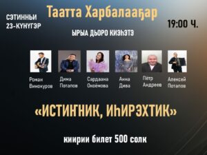 «Тэрээһин программата». Ахсынньы 31 күнүгэр киэһээ 19:00ч. «Саҥа Дьыл алыптаах түгэнэ» эҕэрдэ концерт. ...